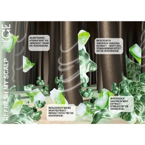 INGREDIËNTEN: Aqua, Cetearylalcohol, Cocos Nucifera-olie, Mentha Arvensis-bladextract (biologisch extract van wilde munt), Laminaria Saccharina-extract wh (biologisch laminaria-extract), Eleutherococcus Senticosus Extract wh (biologisch Siberisch ginseng-extract), Cetrimoniumchloride, Behentrimoniumchloride, Dimethicon , Dimethiconol, Allantoïne, Flavocetraria Nivalis Extract wh (biologisch sneeuw cladonia extract), Dasiphora Fruticosa Extract (biologisch Kuril thee extract), Phenyl Trimethicone, Guar Hydroxypropyltrimonium Chloride, Lauryl Glucoside, Salvia Sclarea Oil (biologische Clary Sage essentiële olie), Melaleuca Oil ( biologische etherische olie van theeboom), menthol, taurine, benzylalcohol, benzoëzuur, sorbinezuur, citroenzuur, parfum, linalool, benzylsalicylaat.