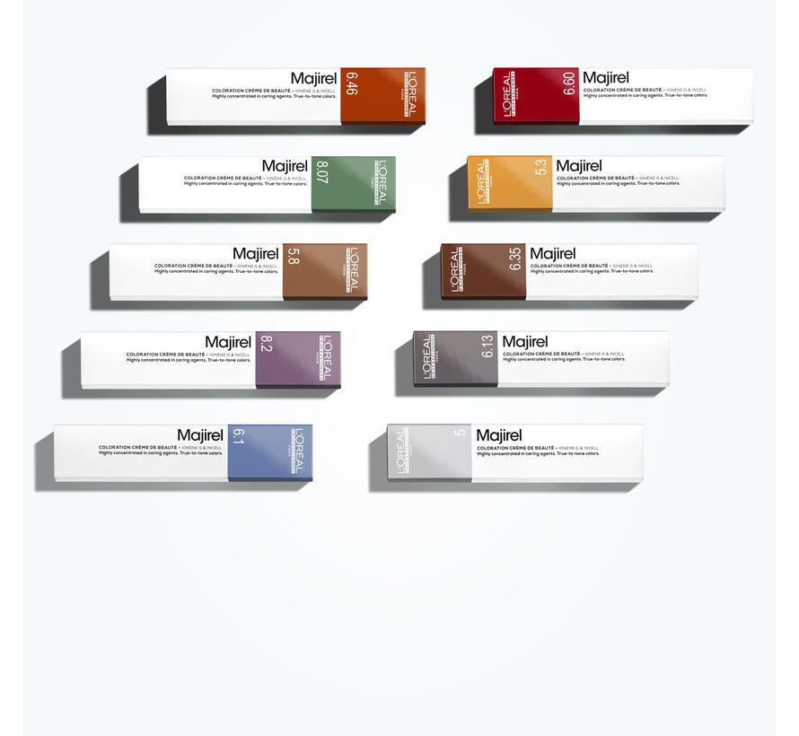 L'Oréal Majirel is een permanente haarverf in een aantal prachtige tinten. De krachtige en intensieve crèmekleuring verzorgt, verstevigt en beschermt het haar van binnen en van buiten. De L'Oréal Majirel lijn bestaat uit vele, diepe en intense kleuren en biedt voor ieder wat wils. Na de aanbreng van de kleur zal jouw haar gezond aanvoelen en er glanzend uitzien!